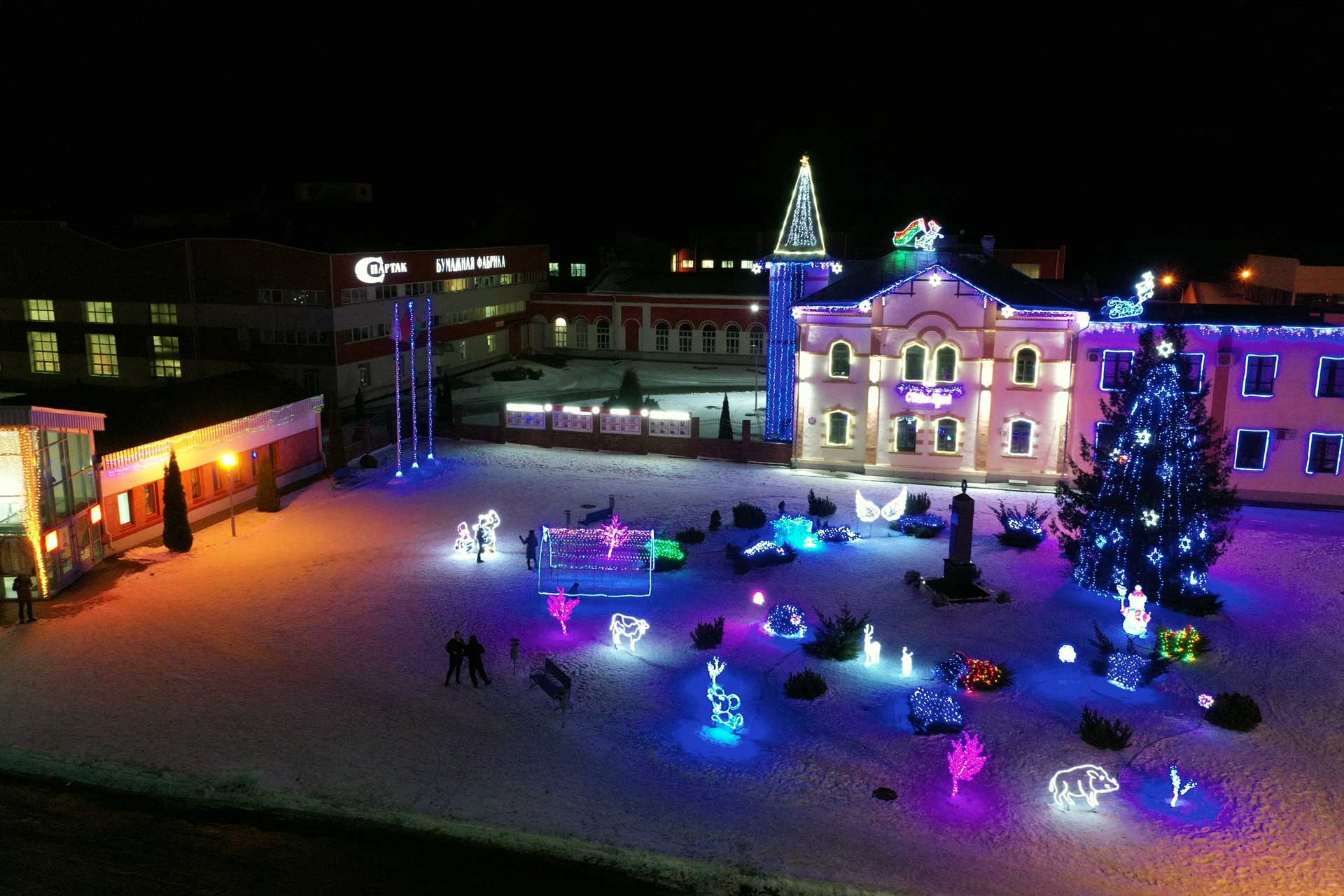Настоящий подарок для шкловчан сделали на ОАО «Бумажная фабрика «Спартак». Здесь оформлена шикарная новогодняя площадка, которую горожане используют в качестве фотозоны. Яркими огоньками переливается фасад здания, а вокруг елочки собрались сказочные персонажи.
